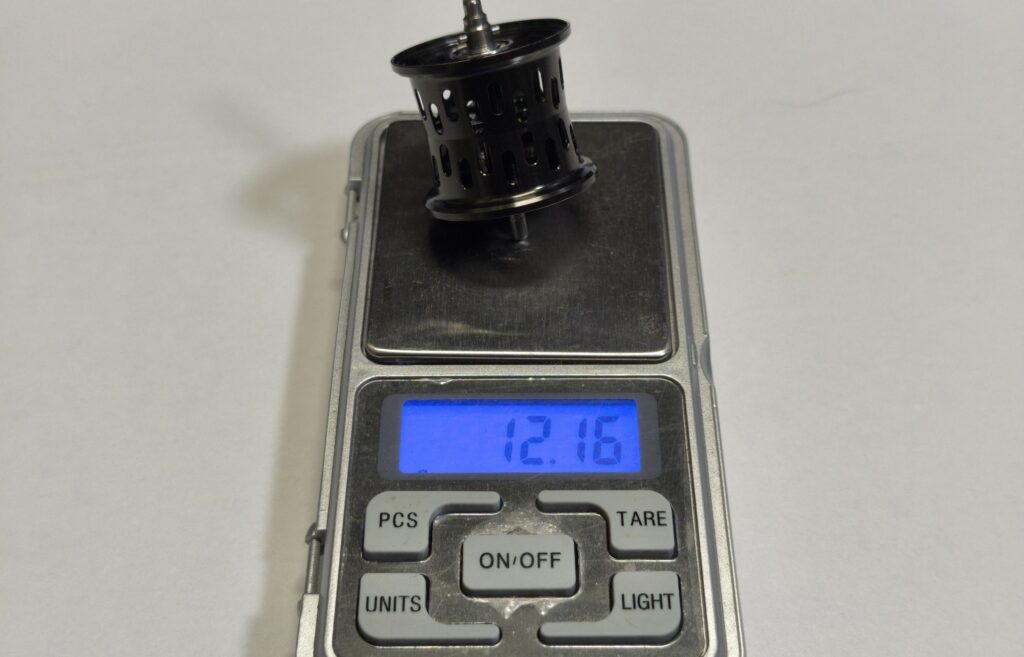 超軽量30mmベイトフィネススプールと公式に書かれてますが、どこが超軽量ベイトフィネススプールやねん。という感じです。