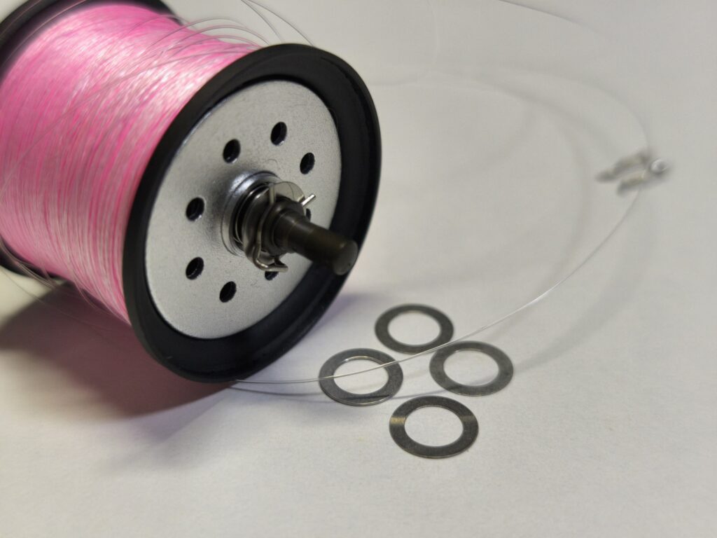 0.1mmワッシャー2枚になりました。なおこの状態でブレーキダイヤルをMAXにしてキャストするとガガっと音が鳴るのでマグネットと接触してるようです。ちゃんとブレーキ板が動いてるようですね。ブレーキMAXで使用することはないのでなんら問題ありません。