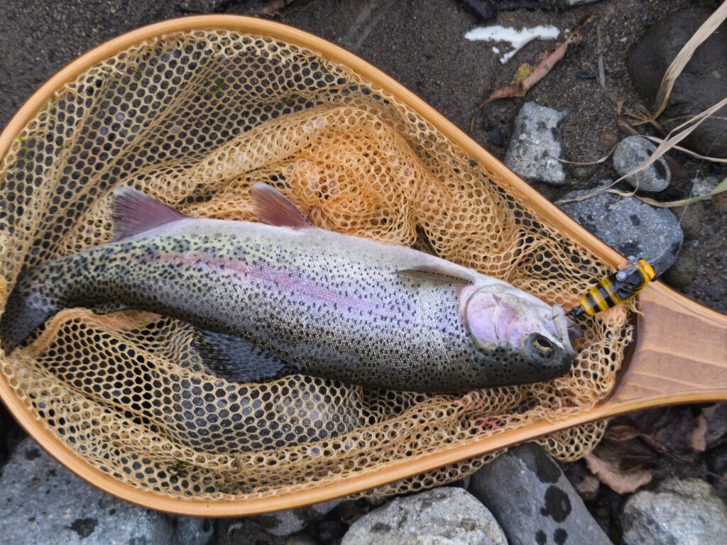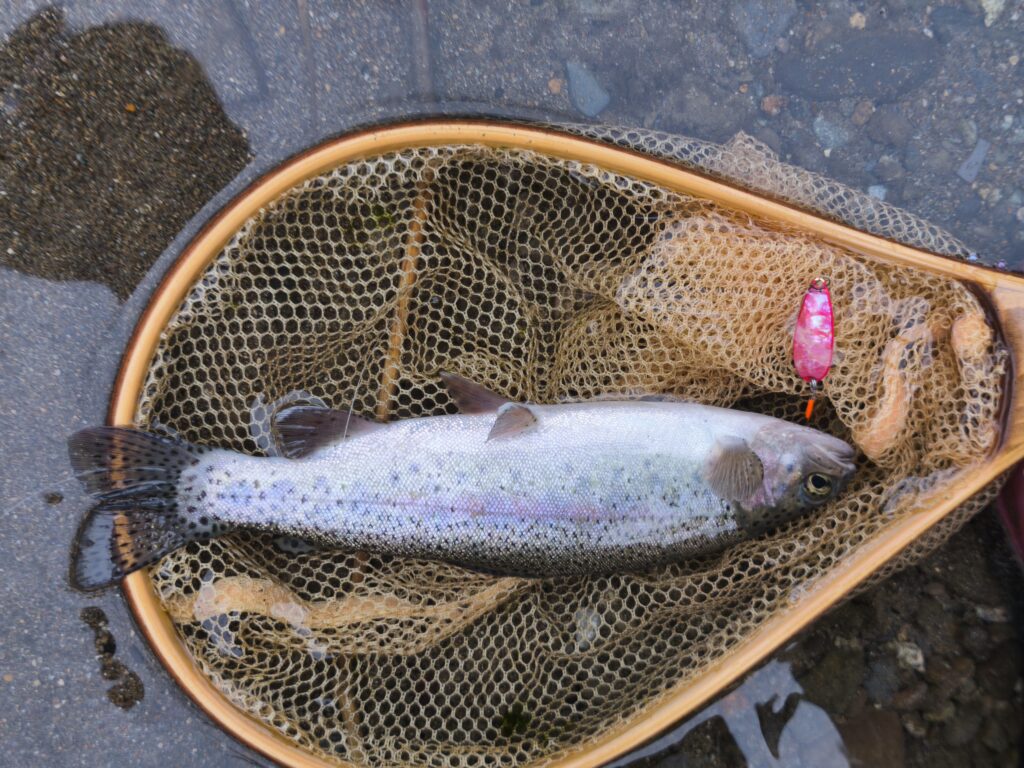 予想はしてましたがニジマスの猛攻が激しいです。投げるたびにアタックしてきます。